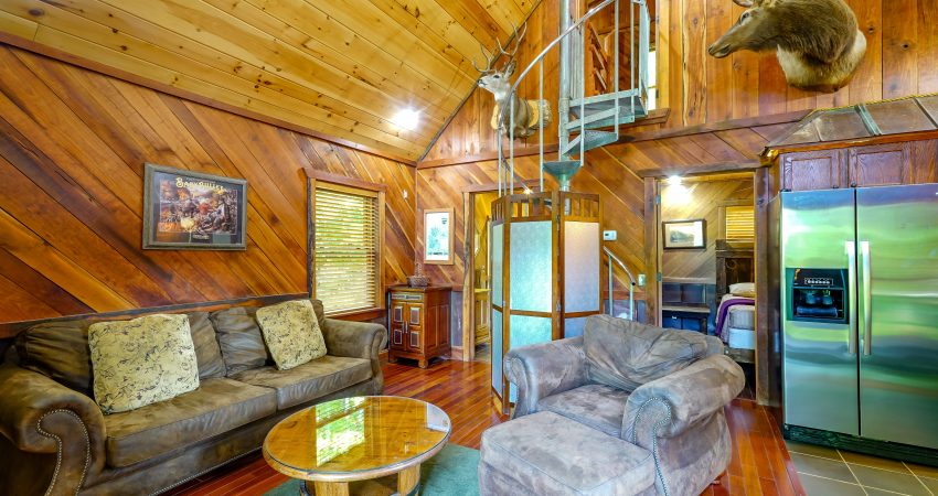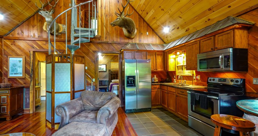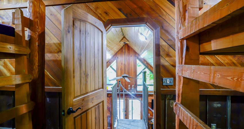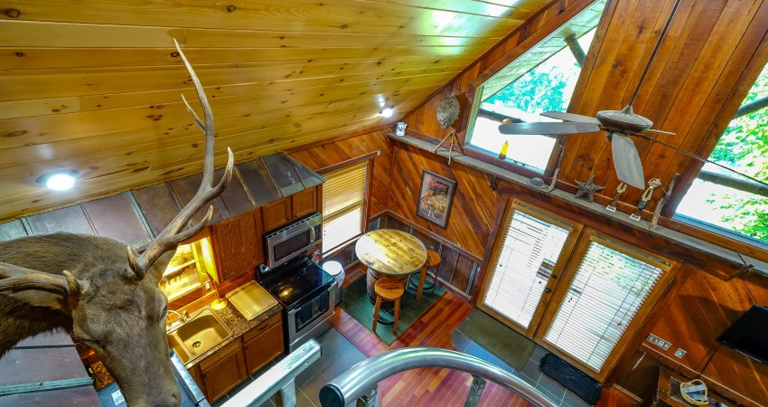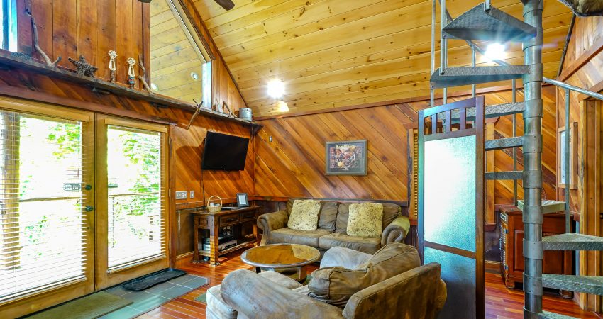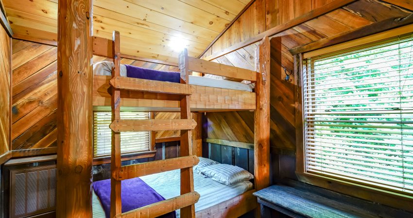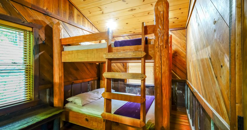 NO PETS!! The ALL NIGHTER is a 2 bedroom, 1 bathroom luxury cabin located just off trail # 1 in the Brimstone® Campground. The large balcony overlooks the river and Trailhead #1. Features include a 42” HD Flat screen TV in the living room with a DVD player, satellite TV with over 250 channels and Pay Per View. There is a full sized, fully-equipped kitchen featuring microwave, stove, and coffeemaker. Wi-Fi is available for purchase. In the enclosed bedrooms, you have 1 queen bed and 2 queen bunk beds in the loft bedroom. On the deck, there’s rustic deck furniture. Plus, the New River access in front of the cabin offers some unreal fishing (walleye, small mouth, muskie, redeye, etc.). For your enjoyment, we have a Counsel House Fire Pit – Nathan’s Place for group gatherings and pure ole country talk. No Pets, Please. No Smoking, Please. There is an additional fee of $25.00 per night per extra person. There is a $90 cleaning fee per stay. When rented with the Hoot I & II, Riverside, and LRV, we have the ability to accommodate 26-30 people all in one area. There is a $500 security deposit that will be held on your credit card pending determination that upon departure the renter has left the cabin in the same condition as it was upon arrival, it will be released within a couple days of your departure. Please visit Cabin Rental Guidelines Page or FAQ’s Page and review our cancellation policy before booking. 2 Bedrooms | 1 First Level Bedroom with Queen Bed, 1 Loft Bedroom with 2 Queen Bunk Beds, | 1 Flat screen TV with over 250 satellite Channels | 1 DVD Player | Wireless Internet Access Available for Purchase | Charcoal Grill | Deck Furniture | Coffee Maker | Stove | Microwave | No Pets, Please | No Smoking, Please | Nice Mountain Views | River Access | Close to Town and Trailhead #1