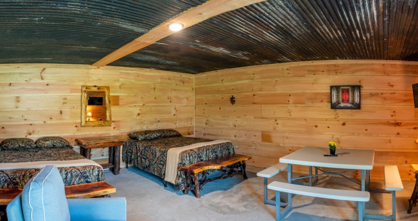 THE BUNKHOUSE IV, V, VI, and VII are all located together on Winona Road. Each Bunkhouse is a large open room that has it’s own private bathroom. Each Bunk House has it’s own full sized fridge, microwave, and coffeemaker. Features include a TV. Wi-Fi is available for purchase. No Smoking, Please. There are 2 queen beds. Combine with the other Bunkhouses and Yeti Caves to sleep 52 in one area. For your enjoyment, there is a fire pit right outside of the barn. $120 per night for 4 guests. There is an additional fee of $25.00 per night per extra person. There is a $75 cleaning fee per stay. There is a $120 security deposit that will be held on your credit card pending determination that upon departure the renter has left the cabin in the same condition as it was upon arrival, it will be released within a couple days of your departure. Please visit Cabin Rental Guidelines Page or FAQ’s Page and review our cancellation policy before booking. One Big Open Room with 2 Queen Bed | 1 TV in Each Unit | Wireless Internet Access Available for Purchase | Charcoal Grill | Fire Pit available outside | Coffee Maker | Microwave | No Smoking, Please | Nice Mountain Views | Close to Trailhead #6