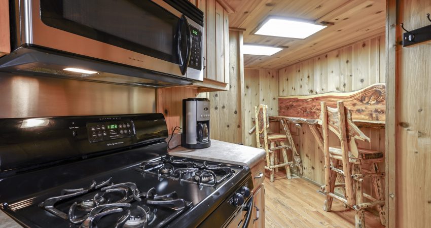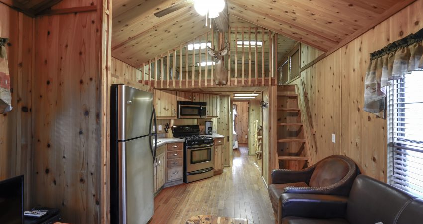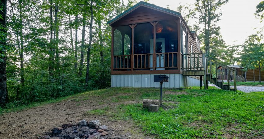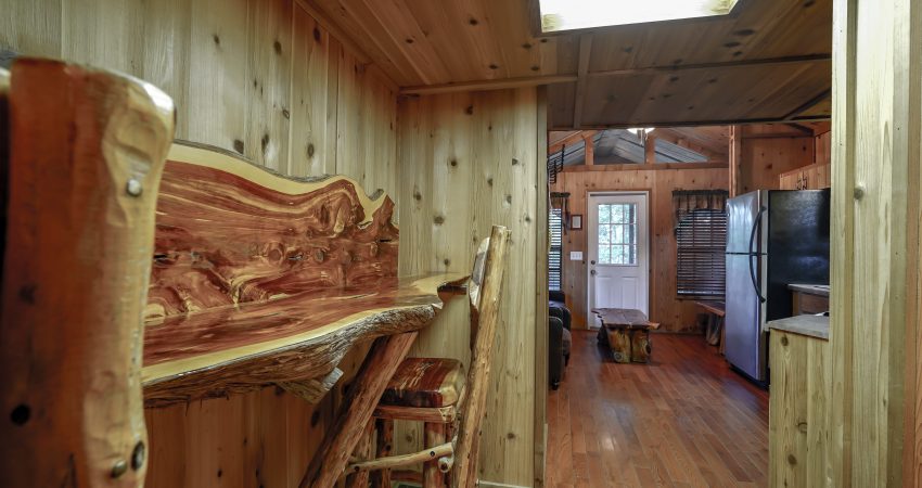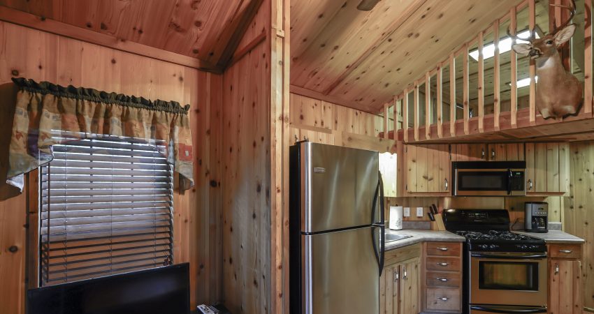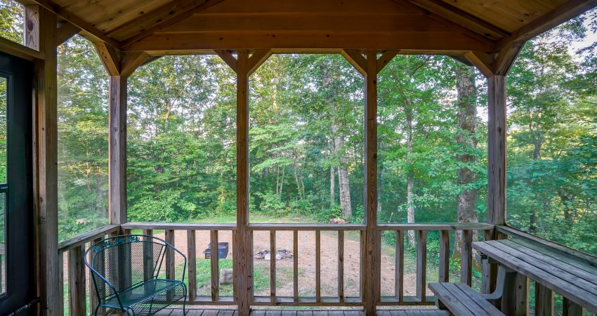 CEDAR NOOK is a one bedroom one bathroom plus loft cabin nestled on 50 lush & undeveloped acres, near Trail #5. Screened porch, picnic tables & BBQ. HD TV, DVD & Satellite TV. Adorned with hardwood floors and a loft with two twin beds that are accessible by ladder. Queen sleeper sofa in the living room. In the enclosed bedroom, there is 1 queen bed. There is a full sized, fully equipped kitchen featuring microwave, full size refrigerator, stove, and coffeemaker. For your enjoyment, there is a screened in porch and a fire pit is located just outside of the cabin. No Smoking Please. Cedar Nook sleeps 6 with an additional fee of $25.00 per night per extra person. When combined with the Bluffs, Cedar Ridge and the Toy Hauler you have the ability to accommodate 24 people all in one area. There is a $75 cleaning fee per stay. There is a $135 security deposit that will be held on your credit card pending determination that upon departure the renter has left the cabin in the same condition as it was upon arrival, it will be released within a couple days of your departure. 1 Enclosed Bedroom | Queen Bed | Queen Size Sofa Bed | 1 Flat screen TV with Over 250 Satellite Channels | 1 DVD Player | Hot Spot Available for Email for $25/Stay First Come, First Serve | Charcoal Grill | Coffee Maker | Microwave | No Smoking, Please | Mountain Views | Near Trailhead #5