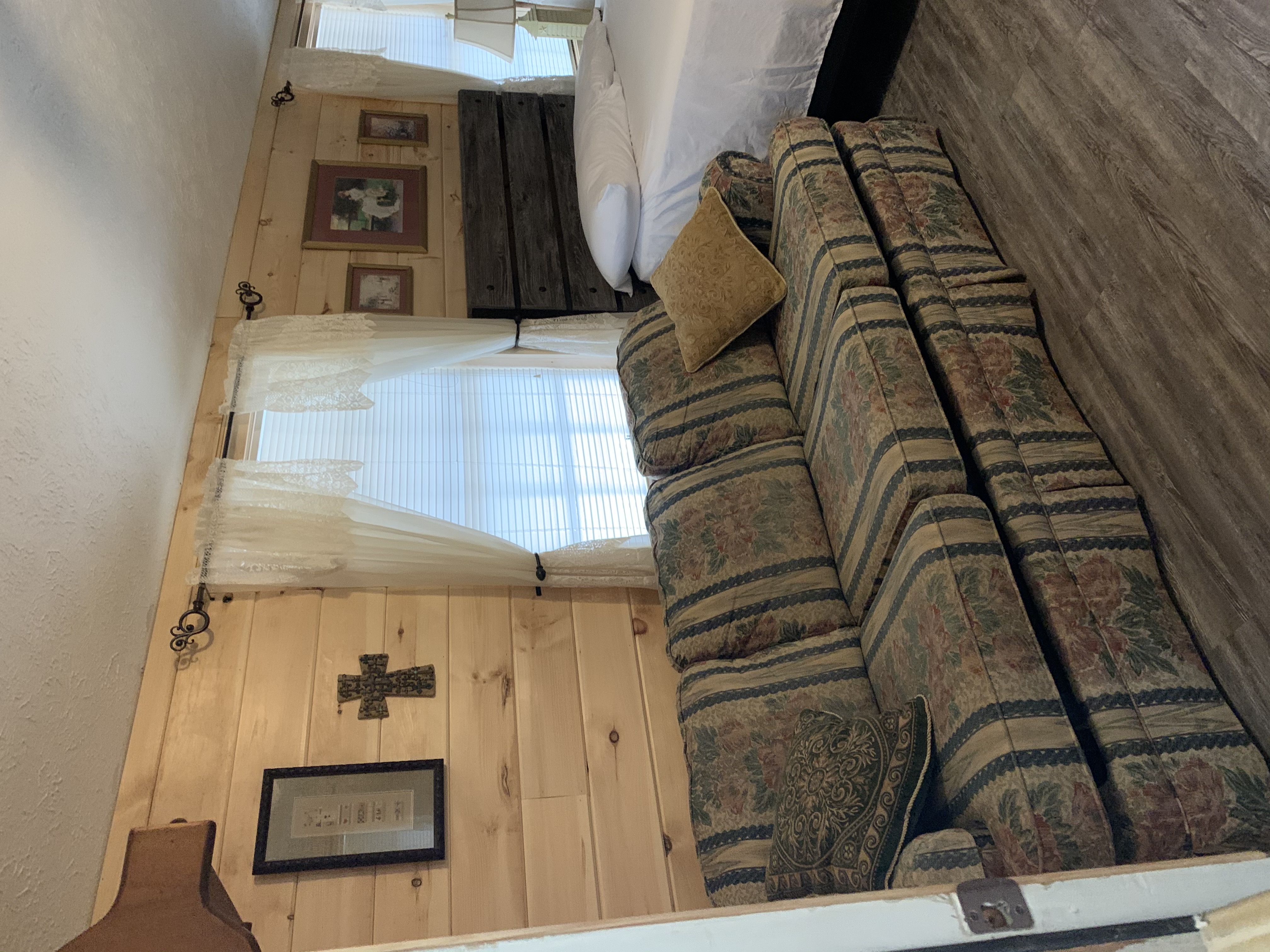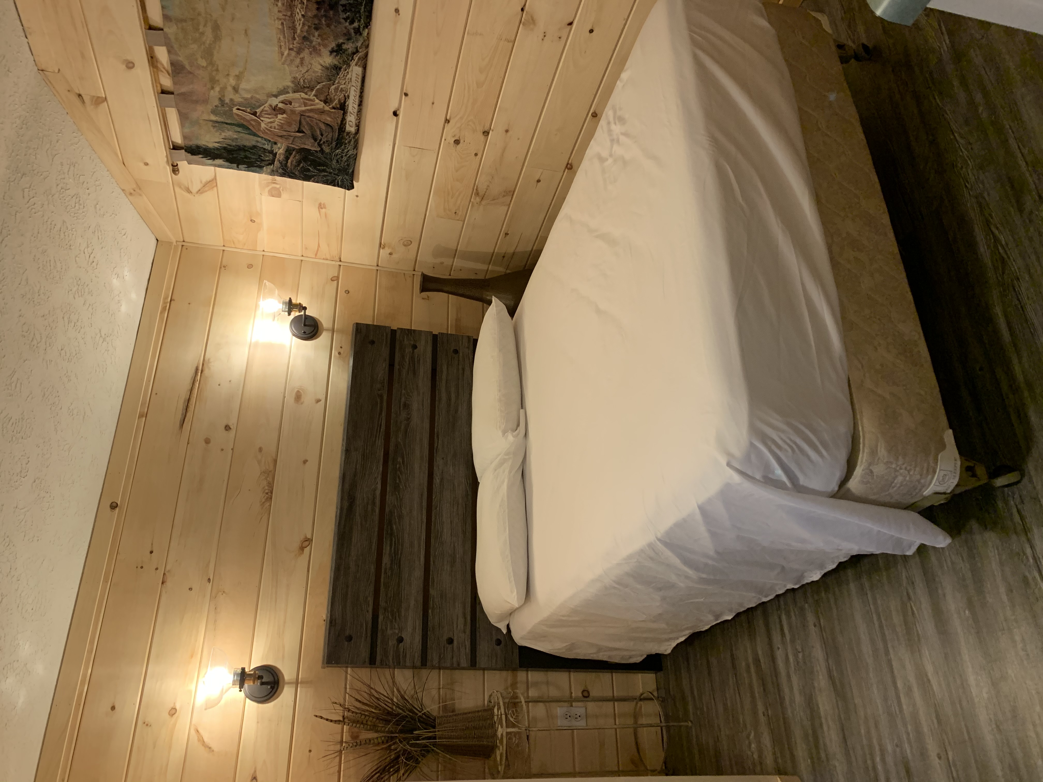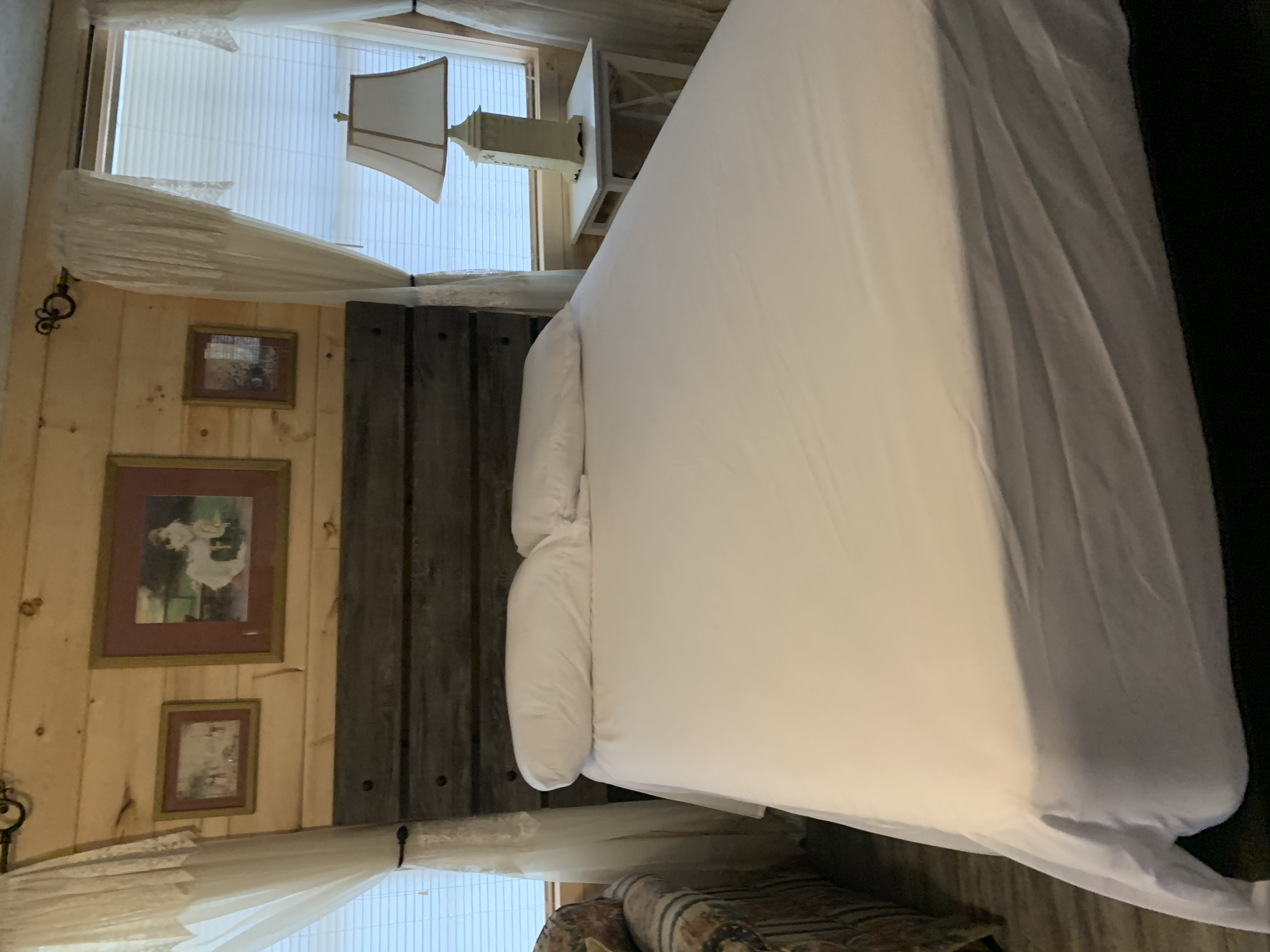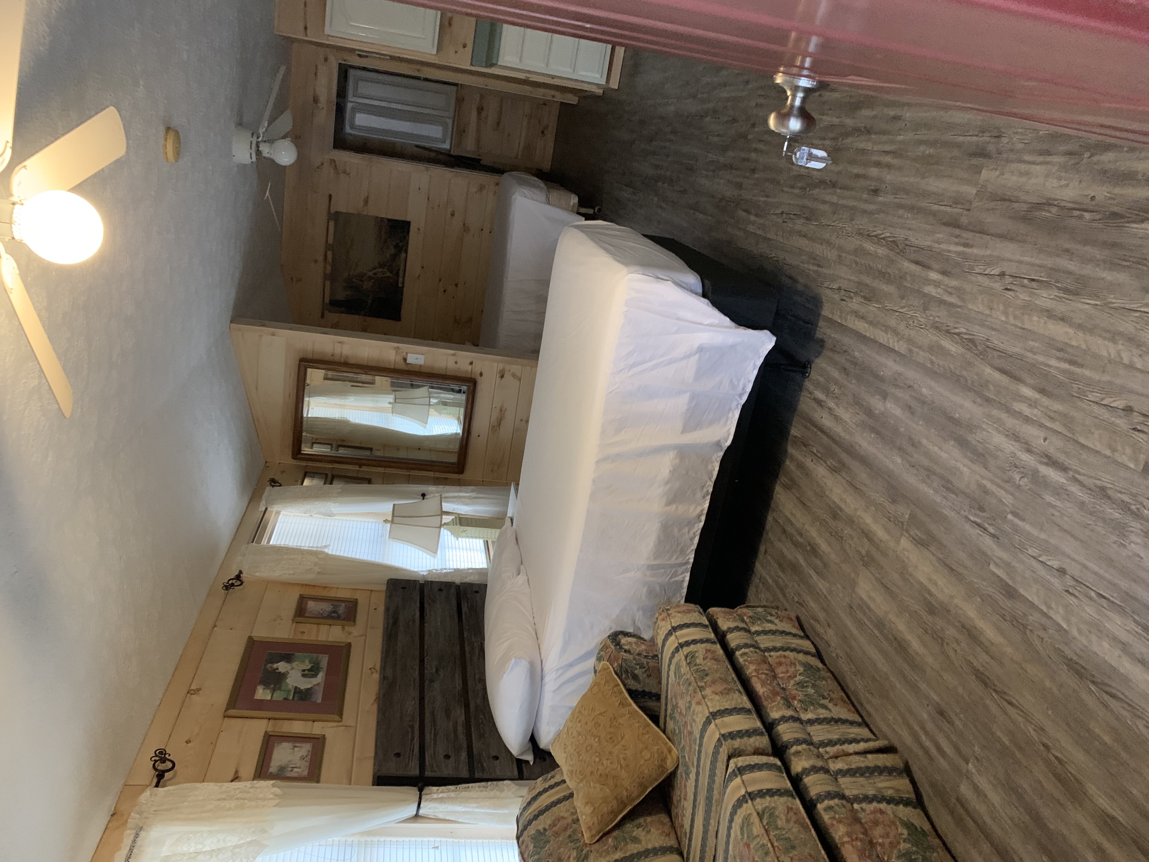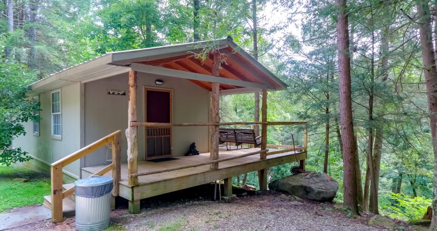 CREEKSIDE CABIN is an open trailer cottage that has a screen separating the living space from the queen bed. It does have a private bathroom. Located just off of Winona rd. Creekside guests are able to enjoy the beautiful view of a relaxing creek from the front porch swing. Features include a TV with Cable TV. There is a full sized, fully-equipped kitchen featuring microwave, stove, and coffeemaker. There is one full bed and one full sleeper sofa. For your enjoyment, there is a fire pit right outside of the cabin. There is an additional fee of $25.00 per night per extra person. There is a $75 cleaning fee per stay. No Smoking, Please. There is a $125 security deposit that will be held on your credit card pending determination that upon departure the renter has left the cabin in the same condition as it was upon arrival, it will be released within a couple days of your departure. Please visit Cabin Rental Guidelines Page or FAQ’s Page and review our cancellation policy before booking. 1 Full Bed and a Fold Out Full Sleeper Sofa | 1 TV with Cable TV |Hot Spot Available for Email for $25/Stay First Come, First Serve | Charcoal Grill | Coffee Maker | Stove | Microwave | No Smoking, Please | Nice Creek Views | Close to Trailhead #6