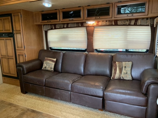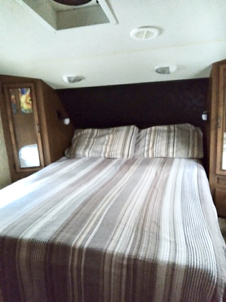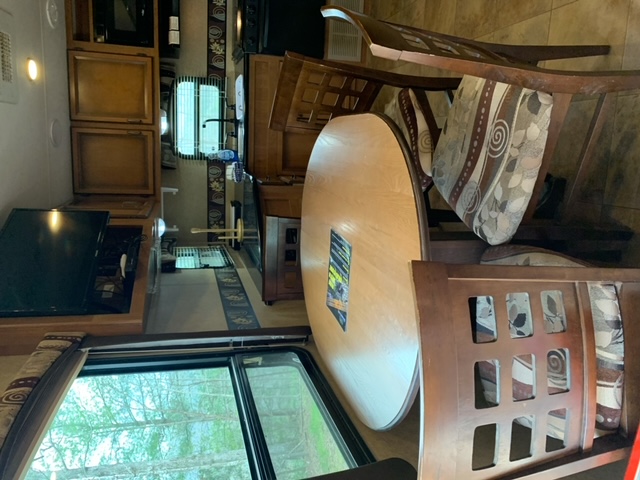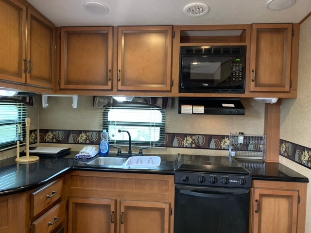 HIPPIE HILL RV I is a secluded brand new deluxe 1 bedroom, 1 bath RV overlooking the river and valley. It is nestled on 50 lush & undeveloped acres, near Trail #5. Flat screen TV w/ Satellite. BBQ & Picnic tables. There is a small kitchen with a refrigerator, microwave, stove, and coffee maker. There is also a Fireplace in the living room. The bathroom has a toilet and small stand up shower in it. One bedroom has a full size bed in it. There is a also a full size sleeper sofa in the living room with a twin bed dining table conversion. 32″ HD TV & Satellite TV. RV I sleeps 4. For your enjoyment a fire pit is located just outside of the RV. There is an additional fee of $25.00 per night per extra person. When combined with Bluffs, Cedar Ridge, Toy Hauler and Cedar Nook, you have the ability to accommodate up to 32 people in one area. No Smoking, Please. There is a $50 cleaning fee per stay. There is a $120 security deposit that will be held on your credit card pending determination that upon departure the renter has left the cabin in the same condition as it was upon arrival, it will be released within a couple days of your departure. Please visit Cabin Rental Guidelines Page or FAQ’s Page and review our cancellation policy before booking. 1 Bedroom | 1 Bathroom | Hot Spot Available for Email for $25/Stay First Come, First Serve | BBQ & Fire Pit | Charcoal Grill | Coffee Maker | Stove Top | Microwave | No Smoking, Please | Nice Mountain Views | Close to Trailhead #5