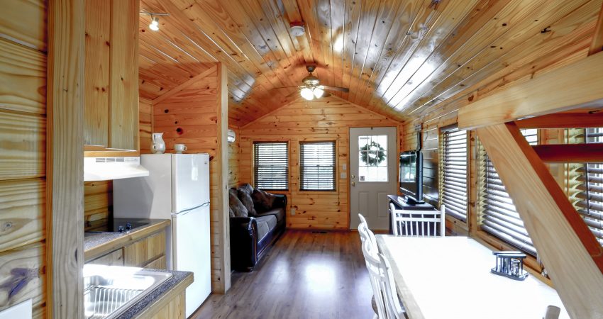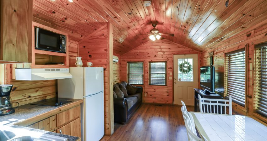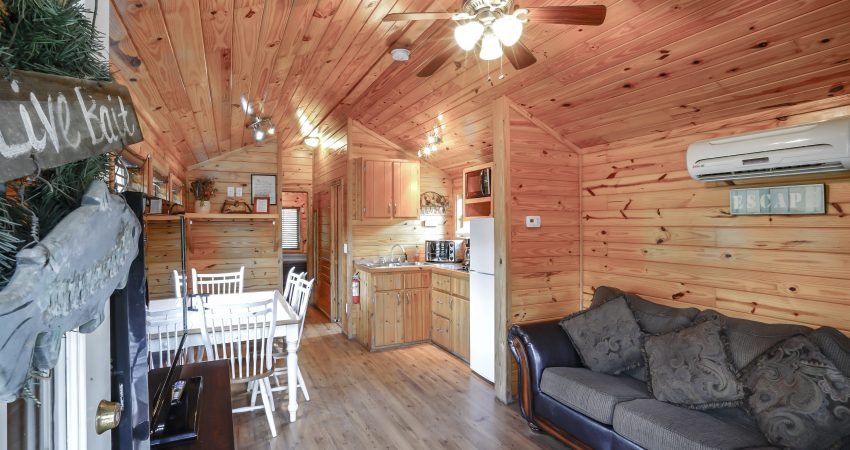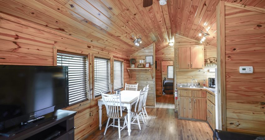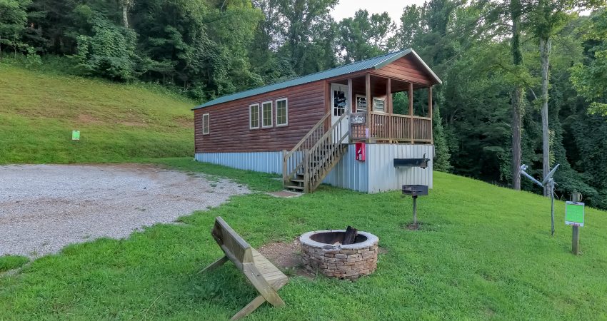 RIVERSIDE is a 1 bedroom, 1 bathroom cabin located just off trail #1 in the Brimstone® Campground. A covered front porch overlooks the river and Trailhead #1. Features include a 42” HD Flat screen TV in the living room with a DVD player, satellite TV with over 250 channels and Pay-Per View. Riverside has an electric fireplace in the living room. There is a partial kitchen featuring microwave, stove top and coffeemaker. Wi-Fi is available for purchase. In the enclosed bedroom, you have 1 queen bed. For your enjoyment a fire pit is located just outside the cabin. Plus, the New River access in front of the cabin offers some unreal fishing (walleye, small mouth, muskie, redeye, etc.). Combined with Hoot I, Hoot II and the All Nighter we have the ability to accommodate 26 people all in one area. There is a $75 cleaning fee per stay. There is a $125 security deposit that will be held on your credit card pending determination that upon departure the renter has left the cabin in the same condition as it was upon arrival, it will be released within a couple days of your departure. Please visit Cabin Rental Guidelines Page or FAQ’s Page and review our cancellation policy before booking. 1 Enclosed Bedroom | Queen Bed, Queen Size Sofa bed | 1 Flat screen TV with over 250 satellite Channels | 1 DVD Player | Electric Fireplace | Wireless Internet Access for Purchase| Charcoal Grill | Coffee Maker | Microwave |No Smoking, Please | Nice Mountain & River Views | River Access | Close to Town and Trailhead #1
