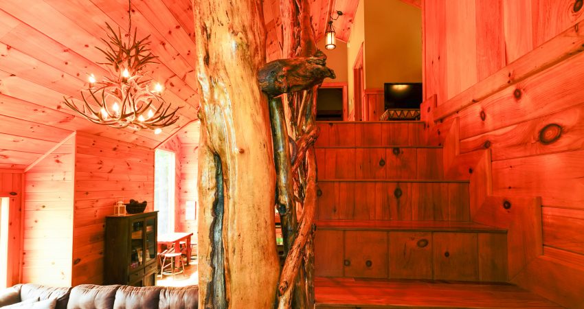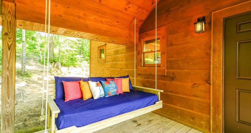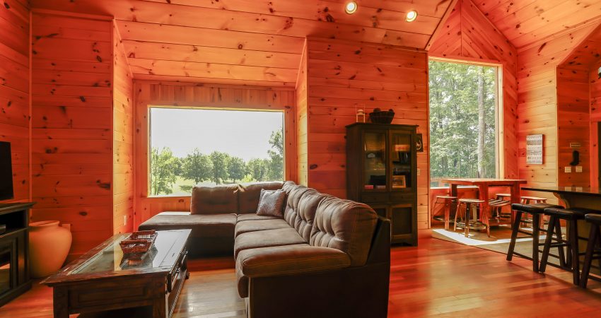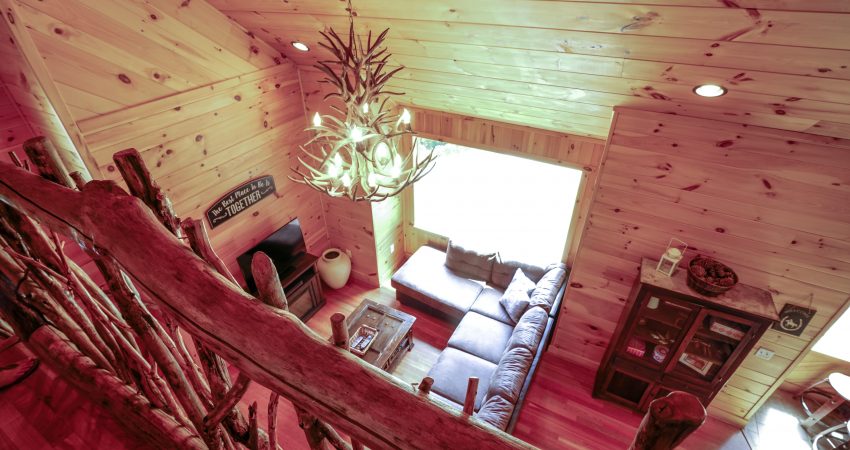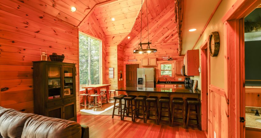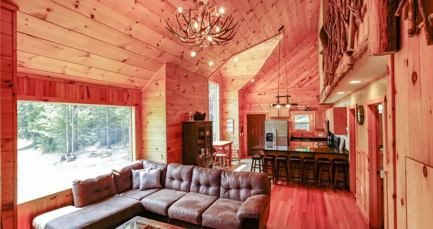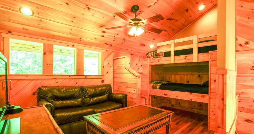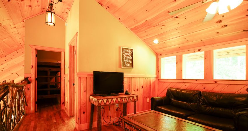 The ROCKY TOP CABIN is a 3 bedroom, 3 bathroom luxury cabin located off of Winona Rd. The deck overlooks Cook’s Pond. Features include a 42” HD Flat screen TV in the living room with a DVD player, satellite TV with over 250 channels and Pay-Per View. There is a full sized, fully-equipped kitchen featuring microwave, stove, dishwasher and coffeemaker. In the enclosed bedrooms, you have 1 queen bed in each of the two downstairs bedrooms and 2 twin size bunk beds (4 twin beds) in the third bedroom. There is also a bunk bed and futon in the loft area. For your enjoyment, we have a electric fire place in the living room and a fire pit right outside of the cabin. There is also a couch bed swing on the front porch overlooking the pond. Plus, the Cook’s Pond in front of the cabin offers some unreal fishing. There is a $90 cleaning fee per stay. There is an additional fee of $25.00 per night per extra person. There is a $90 cleaning fee per stay. Ability to combine with Cooks Pond and The Dog House to accommodate 20 people in one area. The Dog House cabin is directly behind the Rocky Top cabin. There is a $300 security deposit that will be held on your credit card pending determination that upon departure the renter has left the cabin in the same condition as it was upon arrival, it will be released within a couple days of your departure. Please visit Cabin Rental Guidelines Page or FAQ’s Page and review our cancellation policy before booking. 3 Bedrooms | Two First Level Bedrooms with Queen Beds, 1 Upstairs Bedroom with 2 Twin Bunkbeds , and 1 Bunk Bed and 1 Futon in the Loft Area |1 Flat Screen TV with over 250 satellite Channels | 1 DVD Player | Hot Spot Available for Email for $25/Stay First Come, First Serve | Charcoal Grill | Deck Furniture | Coffee Maker | Stove | Microwave | No Smoking, Please | Nice Mountain Views | Pond Access | Close to Trailhead #6