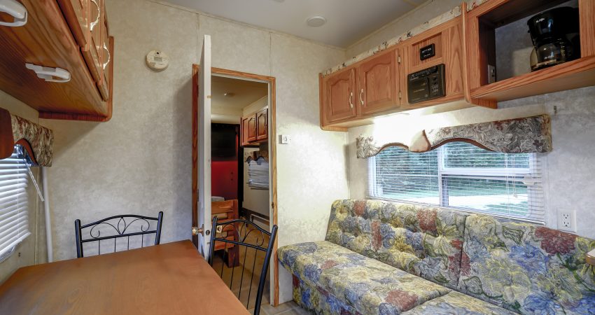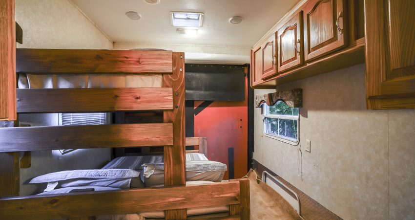 THE TOY HAULER is a 2 bedroom, 1 bath RV nestled on 50 lush & undeveloped acres, near Trail #5. Flat screen TV w/ Satellite. BBQ & Picnic tables. There is a small kitchen with a refrigerator, microwave, stove, and coffee maker. The bathroom has a toilet and small stand up shower in it. One bedroom has a queen size bed in it and the other bedroom has a bunk bed with two full size beds. There is a also a queen sleeper sofa in the living room. For your enjoyment a fire pit is located just outside of the RV. There is an additional fee of $25.00 per night per extra person. When combined with Bluffs, Cedar Ridge, and Cedar Nook, you have the ability to accommodate up to 24 people in one area. No Smoking, Please. There is a $50 cleaning fee per stay. There is a $100 security deposit that will be held on your credit card pending determination that upon departure the renter has left the cabin in the same condition as it was upon arrival, it will be released within a couple days of your departure. Please visit Cabin Rental Guidelines Page or FAQ’s Page and review our cancellation policy before booking. 2 Bedroom | 1 Bathroom |Hot Spot Available for Email for $25/Stay First Come, First Serve | Charcoal Grill | Coffee Maker | Stove Top | Microwave | No Smoking, Please | Nice Mountain Views | Close to Trailhead #5